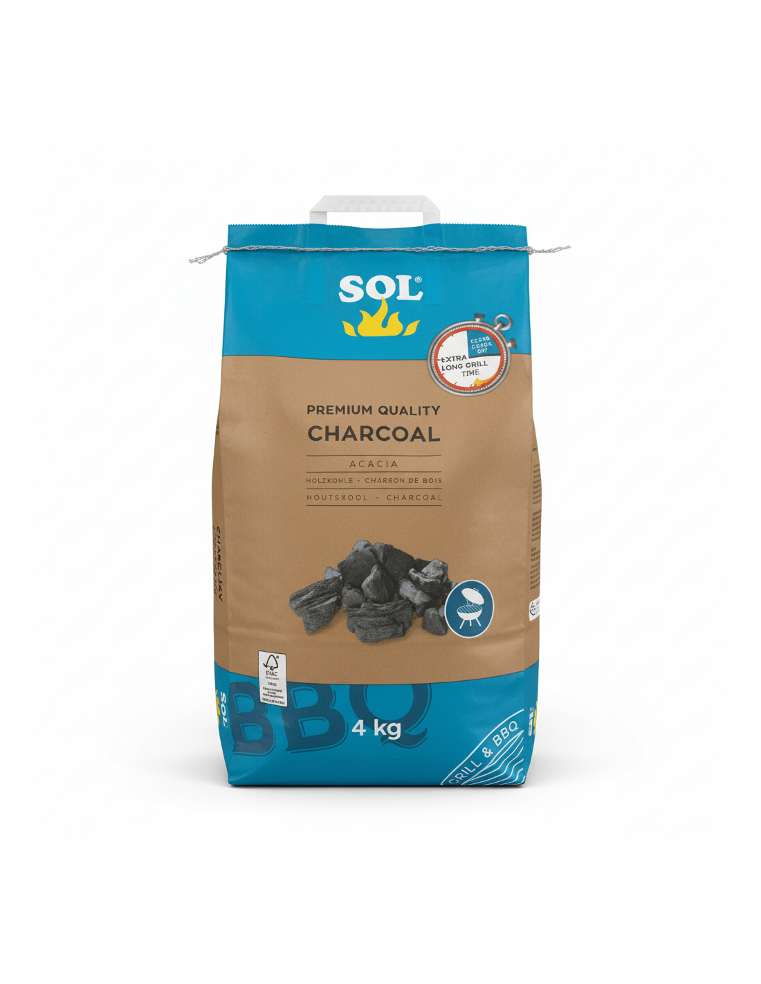 Le charbon de bois Sol Premium (4 kg) est un combustible de qualité certifié FSC qui garantit une chaleur homogène et une combustion fiable. Idéal pour les barbecues et les grills, il présente une texture fine qui s'enflamme rapidement et offre des résultats de cuisson constants.