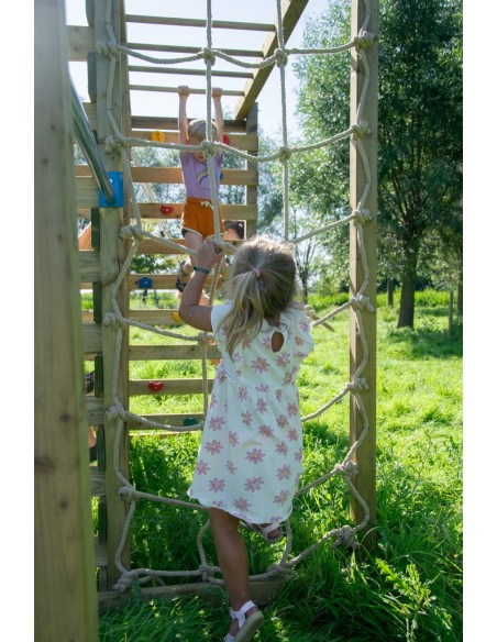 Le Jungleklim est une structure de jeux complète et polyvalente qui garantit des moments de jeu actifs et pleins d'aventure. Idéale pour les jardins, les aires de jeux et les espaces de loisirs où les enfants peuvent se défouler à leur guise.
