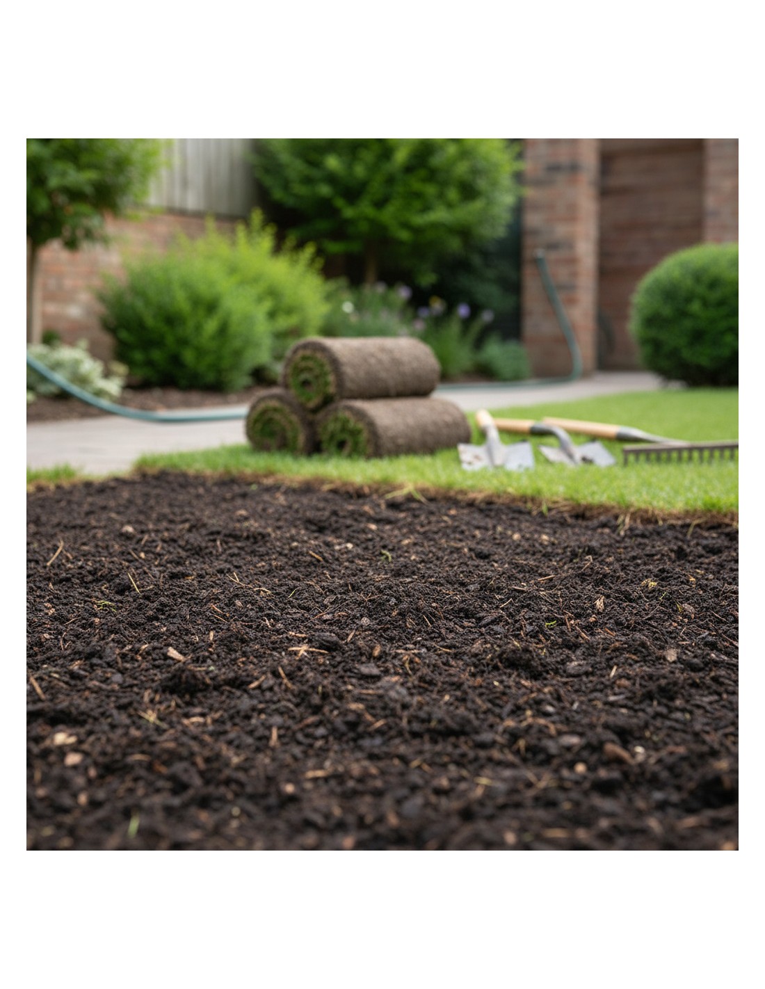 Incorporez le compost mélangé en surface dans la couche supérieure du sol avant de semer ou de poser des rouleaux de gazon. Cela crée un substrat fertile et aéré dans lequel le gazon peut rapidement s'enraciner et pousser.