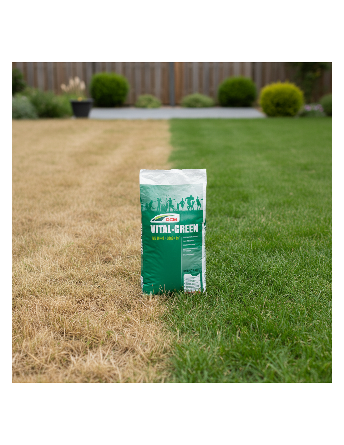 Grâce à sa composition équilibrée, DCM Vital Green répond parfaitement aux besoins nutritionnels de l'herbe. La combinaison unique de nutriments organiques à action prolongée et directement absorbables assure un effet de (re)croissance immédiat et durable de l'herbe. La teneur ajustée en potassium assure une meilleure résistance au piétinement et à la sécheresse. Du magnésium et du fer, sous forme de chélate de fer, sont ajoutés pour une couleur verte profonde de l'herbe. Les éléments nutritifs liés organiquement dans DCM Vital Green sont progressivement libérés par la vie du sol pendant 75 à 100 jours, en fonction des besoins de l'herbe, pour une croissance continue et moins de lessivage.