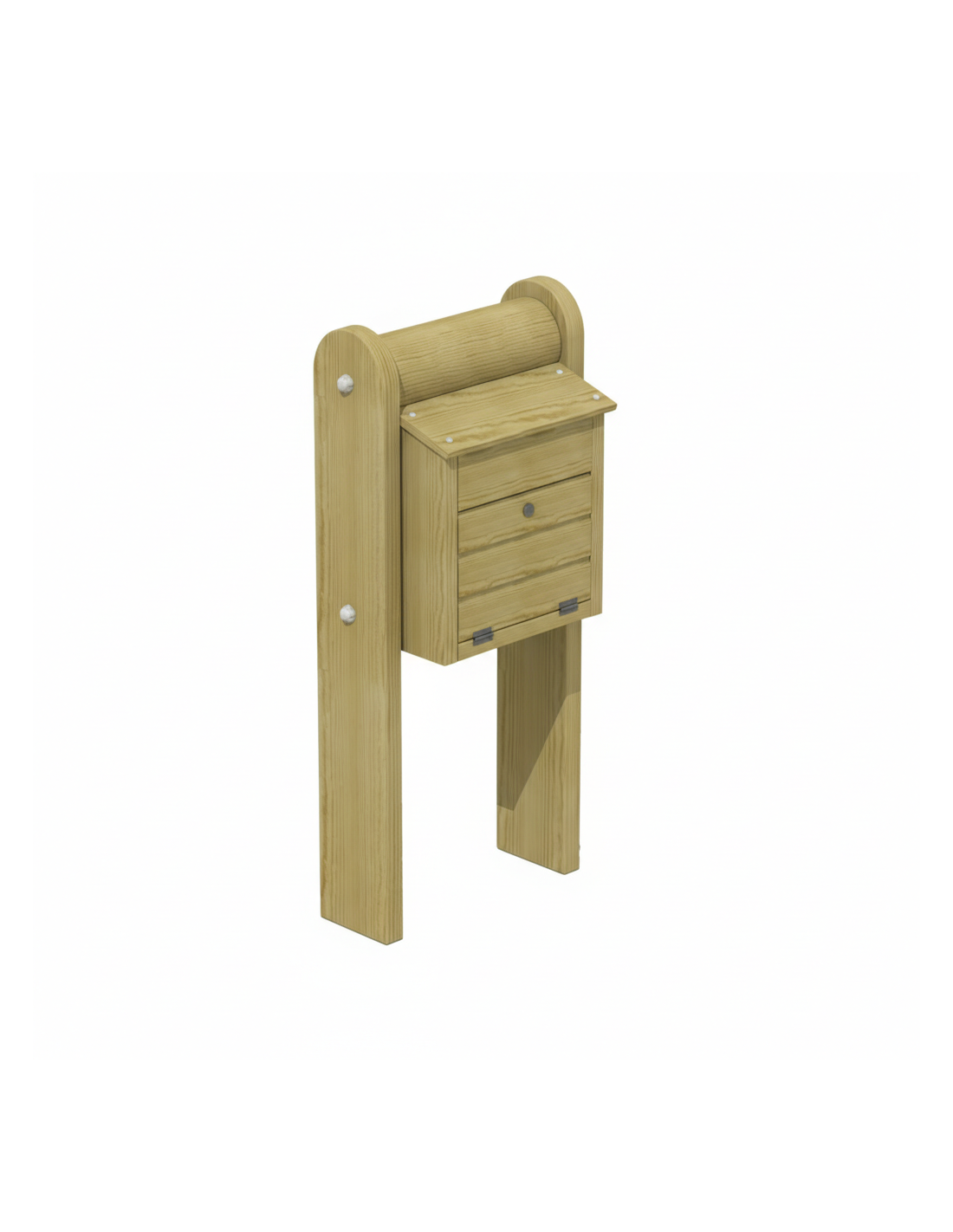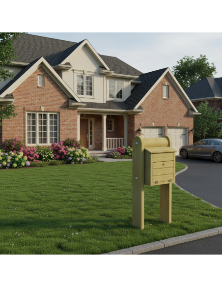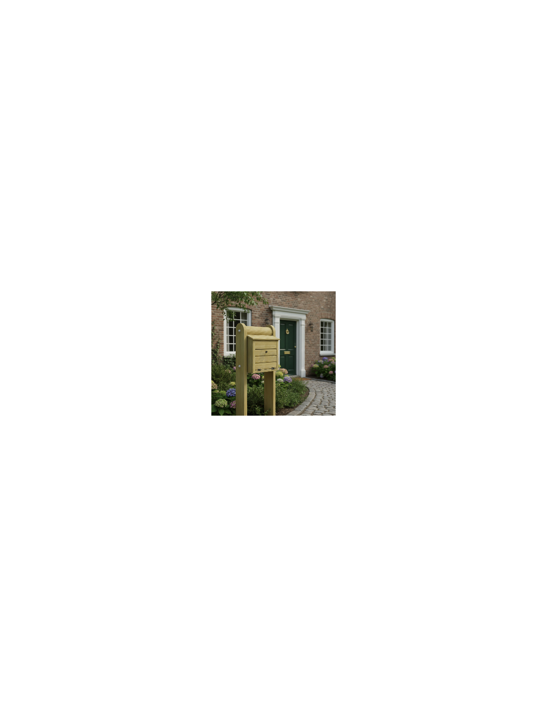 La boîte aux lettres Jupiter est livrée avec ses poteaux et s'installe facilement. La fixation au mur ou au poteau s'effectue à l'aide de chevilles et de vis standard. Pour prolonger sa durée de vie, il est recommandé de traiter le bois chaque année avec une huile ou une lasure respirante. Nettoyez régulièrement la surface avec une brosse douce et évitez tout contact direct avec les projections d'eau en maintenant une distance minimale par rapport au sol.