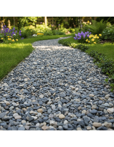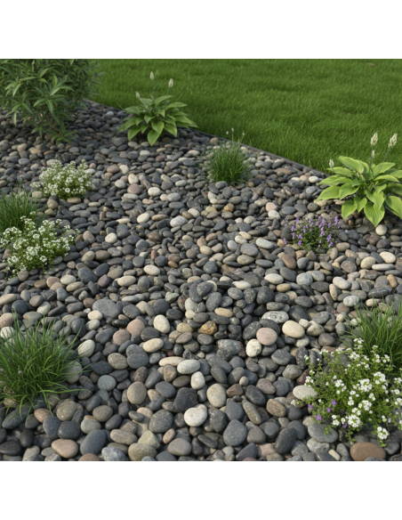 Le Black Pearl, aussi appelé Mignonette noire, est un gravier décoratif gris‑noir très foncé, parfaitement arrondi et idéal pour petits et grands aménagements extérieurs. Grâce à sa solidité et son aspect moderne, il convient aussi bien aux allées qu’aux projets décoratifs.
