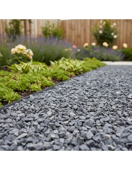 Le gravier décoratif Onyx Noir est un gravier concassé d'un noir profond, aux reflets bleu-noir luxueux. Solide et inaltérable, il convient parfaitement aux allées, aux terrasses et aux jardins modernes où l'on recherche un résultat épuré et élégant.