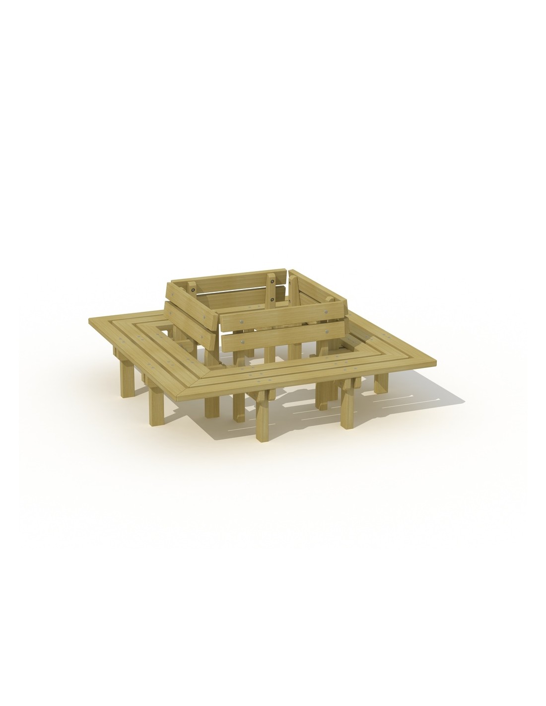 Banc Lyon avec dossier en pin norvégien rouge imprégné sous pression, durable et robuste. Idéal pour les parcs, les sites d'entreprises et les espaces publics.