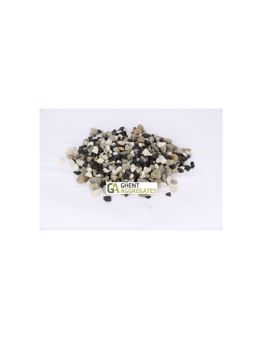 Mooie, klassieke mengeling met lichtgrijze, helder witte en zwarte steentjes. Niet geschikt voor zones zwaar vervoer.