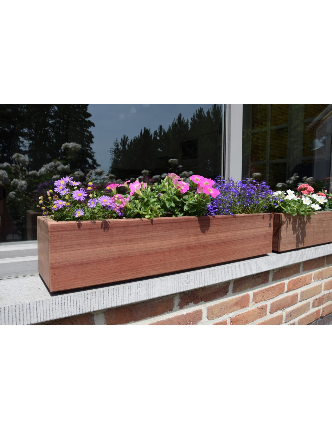 Deze stevige en duurzame bloembak vervaardigd in padouk of grenen past bij elke stijl.