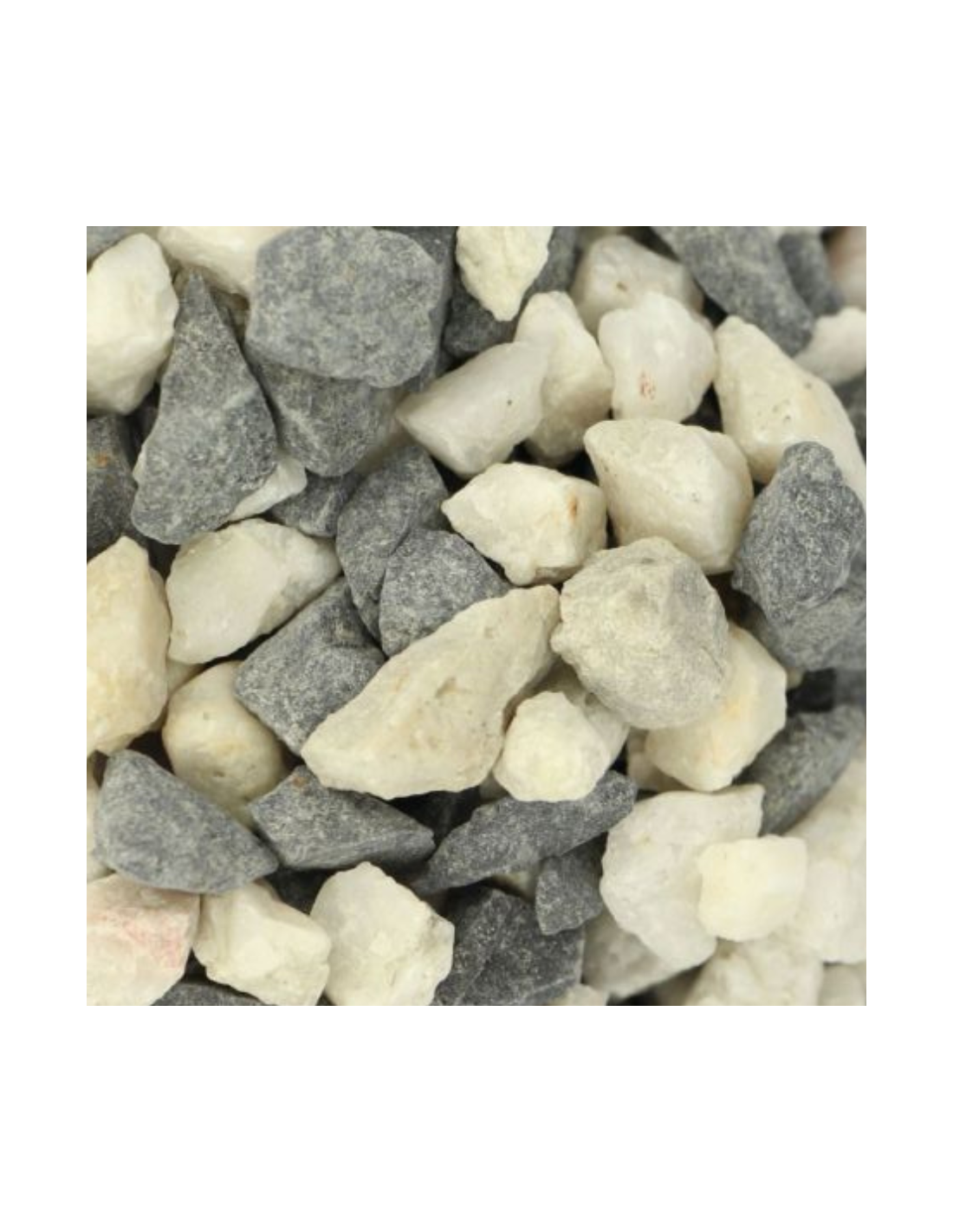 Venetiaans siergrind los gestort is een exclusief siergrind met een elegante mix van grijze, witte en zwarte kiezels. Dankzij de stijlvolle kleurencombinatie en onderhoudsvriendelijke eigenschappen is dit grind ideaal voor opritten, tuinpaden, terrassen en decoratieve toepassingen met een moderne uitstraling.